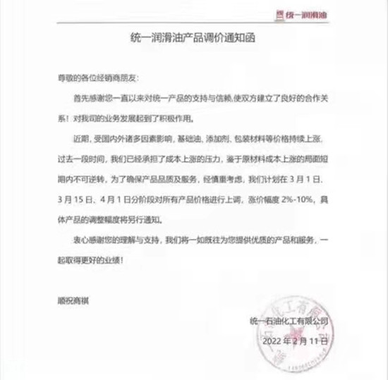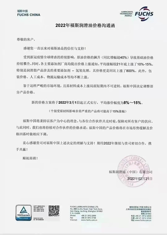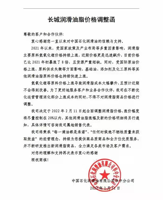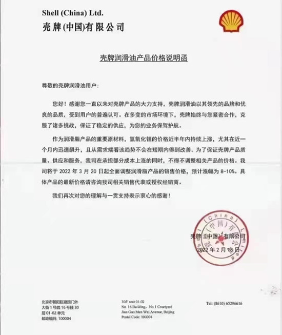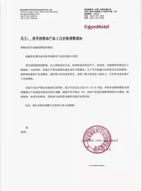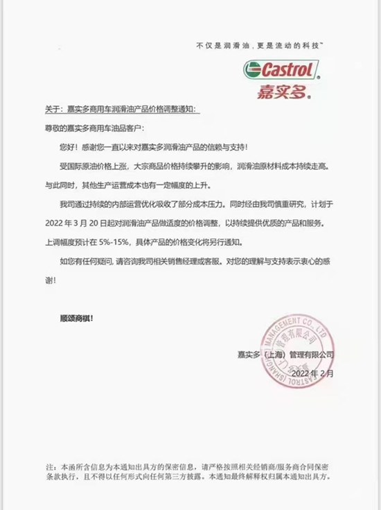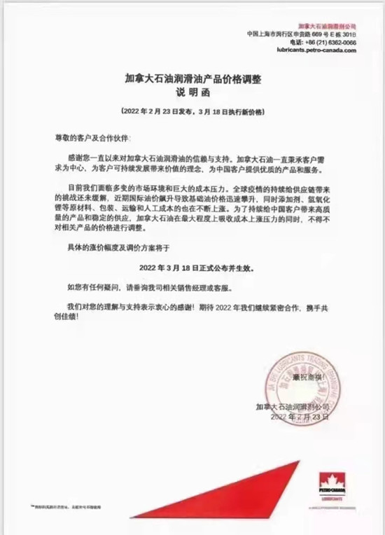 以下是元素君整理的部分潤滑油品牌的價格動態(tài)和調(diào)價函。