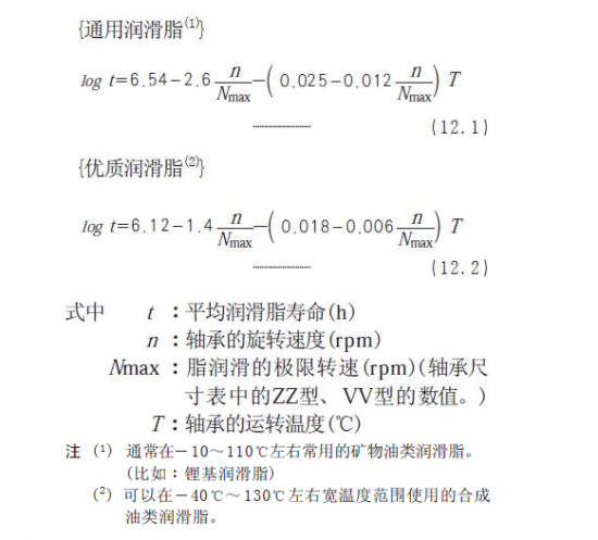 軸承的平均潤(rùn)滑脂壽命L50基本就決定了軸承的最終使用壽命,質(zhì)量再好,不給潤(rùn)滑油(油脂干涸掉了),干摩擦能摩擦多久?所以這個(gè)平均潤(rùn)滑脂壽命L50基本被認(rèn)為是軸承的最終使用壽命(注:平均潤(rùn)滑脂壽命L50為可靠性為50%的經(jīng)驗(yàn)公式計(jì)算壽命,僅供參考用,實(shí)際試驗(yàn)評(píng)價(jià)時(shí)離散性較大)。