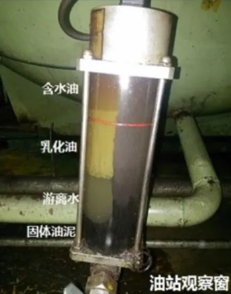 這張圖中顯示的就是我們工業生產設備有代表性的油箱的窗口,引申出來油和水之間的一個關系。正常來說,油和水是不相溶的,但是在實際運行過程中,水分混到油里會出現三種狀態。