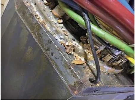 工廠車間在使用五軸數控加工中心之后,延續了之前切削液的管理方法和使用認識,忽視了高端數控機床對切削液的使用要求。同時,切削液在設備使用中的狀態缺乏有效的檢測及維護方法,導致五軸數控加工中心經過一段時間使用后,多臺加工中心陸續出現故障。經廠家維修發現,機床主軸電氣管線和內置系統出現了由切削液引起的嚴重腐蝕現象,造成了設備電氣系統的隱形故障,故障停機已嚴重影響到正常的生產交付。